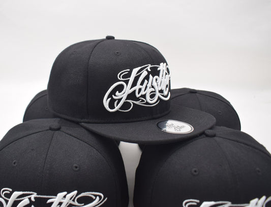 HUSTLE Snapbacks black with white 2D/3D embroidery